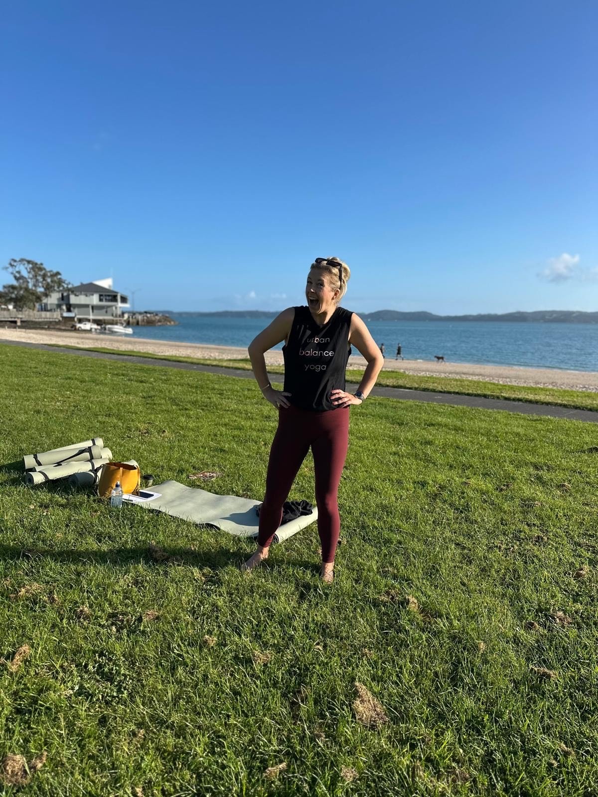 I started Urban Balance Yoga in 2018, running my first class on a Sunday morning at Maraetai — when I was just a few weeks pregnant! Beach yoga remains a favourite, helping people connect with themselves and the beautiful surroundings we’re lucky to have here in East Auckland.